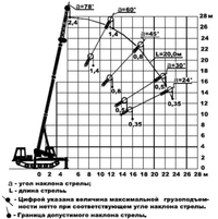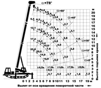 Диаграмма грузовысотных характеристик крана в зоне работы с основной грузовой характеристикой
